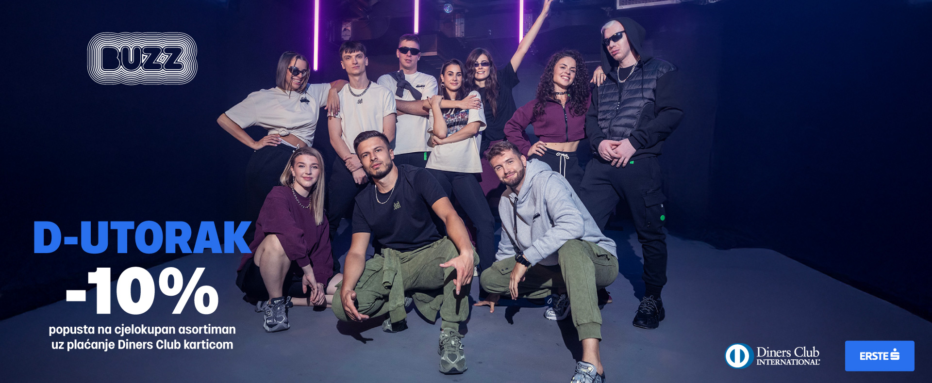 9. prosinca na BUZZ web shopu i u trgovinama plaćaj Diners Club karticom i ostvari 10% popusta na ukupan iznos računa. Provjeri najnovije modne trendove i odaberi svoj novi outfit!