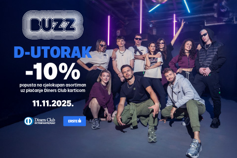 11. studenog na BUZZ web shopu i u trgovinama plaćaj Diners Club karticom i ostvari 10% popusta na ukupan iznos računa. Provjeri najnovije modne trendove i odaberi svoj novi outfit!