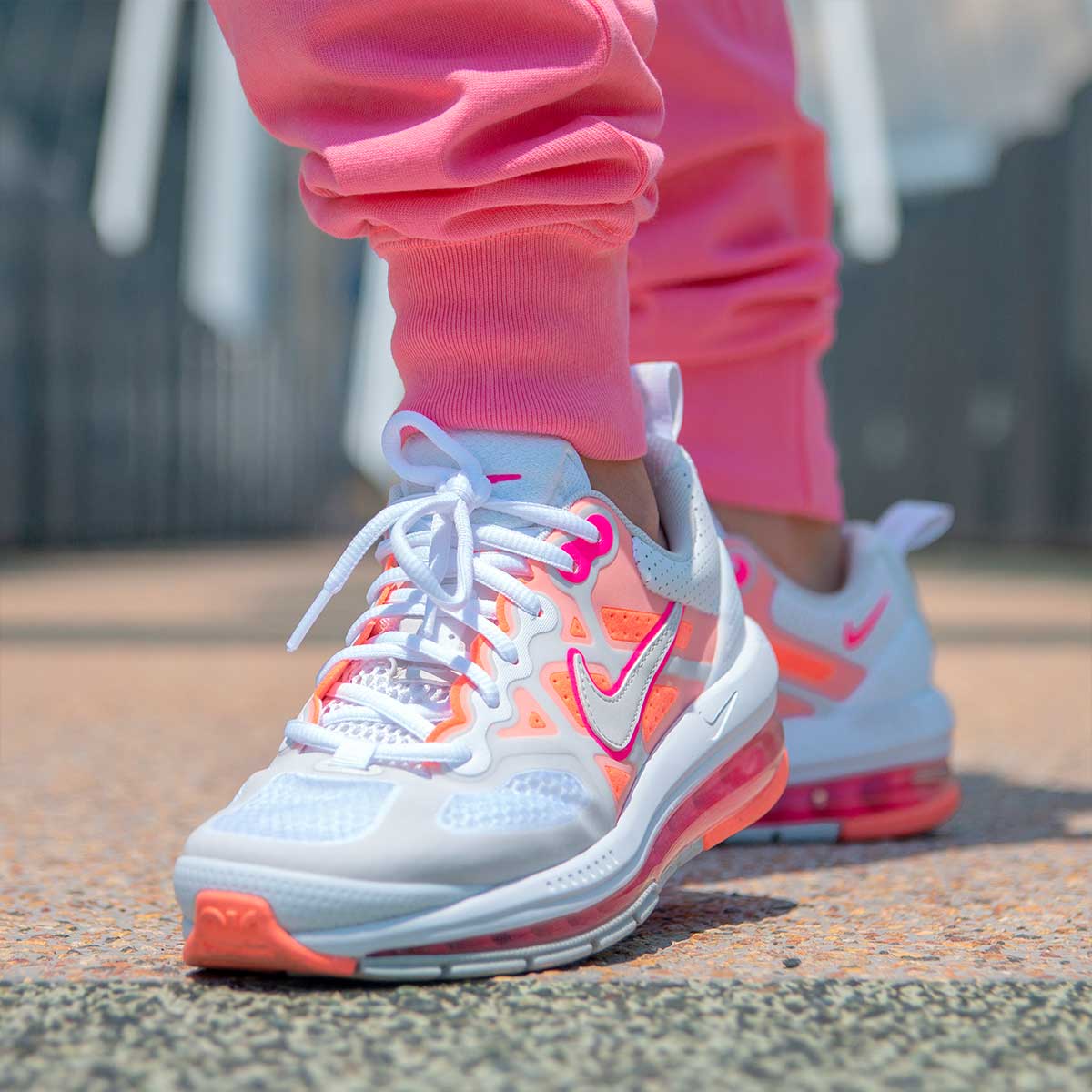 Model Nike Air Max Genome ima ključne elemente iz prošlih modela, a dolazi u bojama Bubble Gum, gornje dio izrađen je od mješavine mreže, perforirane kože i sintetičkih obloga.