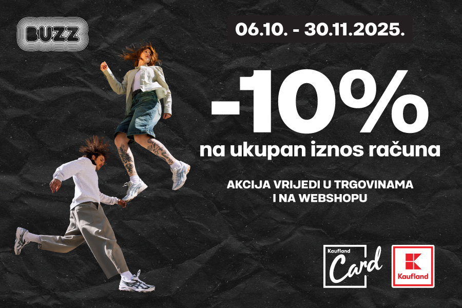 U periodu od 6. listopada do 30. studenoga 2025., uz predočenje svoje Kaufland Card kartice iskoristi -10% popusta na ukupan iznos računa u BUZZ trgovinama i na webshopu!